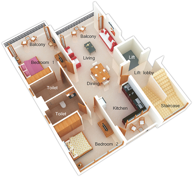 Typical 2 Bedroom Residence | Area- 1271 SQFT